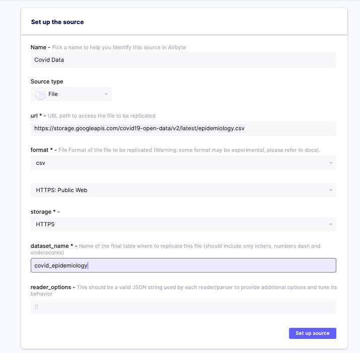For the sake of this tutorial, let's create some source and destination as an example that we can refer to afterward. We'll be using a file accessible from a public API, so you can easily reproduce this setup: